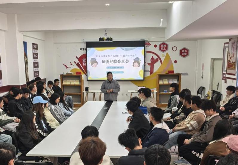 2026年3月15日下午,化学工程学院在学生社区举办化学工程学院“化韵同行 朋辈研习坊”——班委经验分享会。本次分享会邀请到了装控241班和装控242班的班委进行分享,2025级本科生班委共计60余人参加,本次分享会由学院团委书记田世垚主持,活动由学院学生党员服务队与学院团委联合举办。