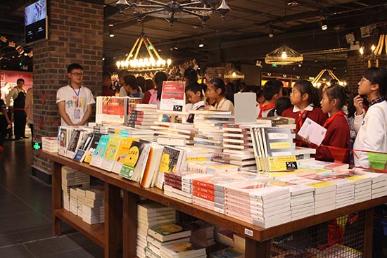 杨老师刚刚抵达活动现场,便围来了很多小朋友给杨老师献花,杨老师到现场入口处签到墙上签名后,热情地与小朋友们拍照合影留念。紧接着杨老师便径直走向正式售书签名处,家长在工作人员的指引下,纷纷为小孩子挑选、购买书籍,然后找杨老师要签名,并合影留念。