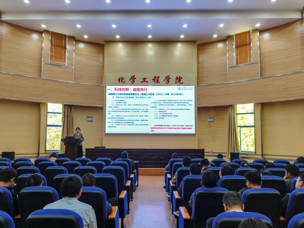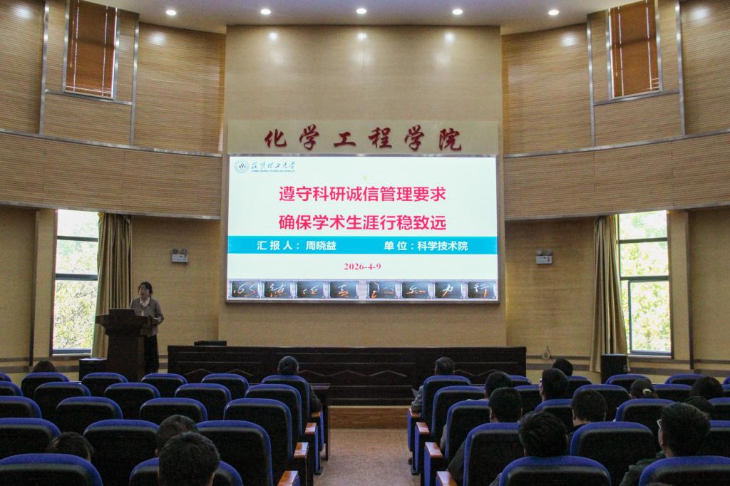 2026年4月9日,化学工程学院面向全院教师开展了主题为“遵守科研诚信管理要求·确保学术生涯行稳致远”的科研诚信主题教育,邀请科学技术院周晓益老师做专题报告。