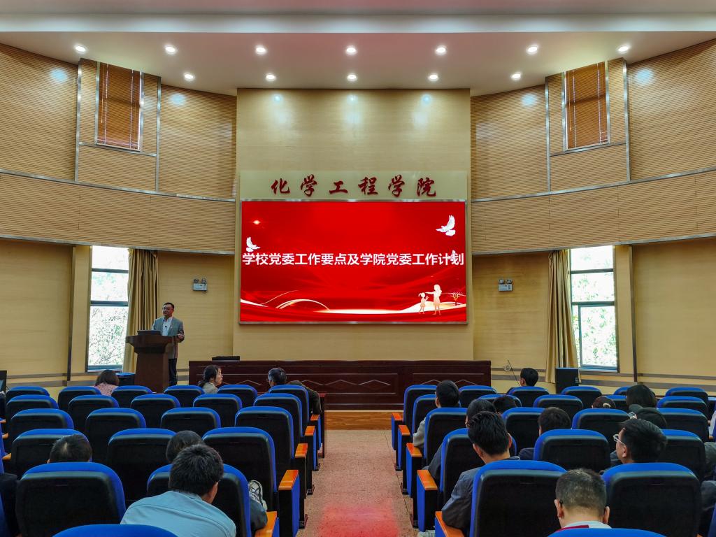 2026年4月9日,化学工程学院举行了第二次全院教职工大会,会议由孙刚书记主持,学院领导班子及全体教职工共同参加本次活动。